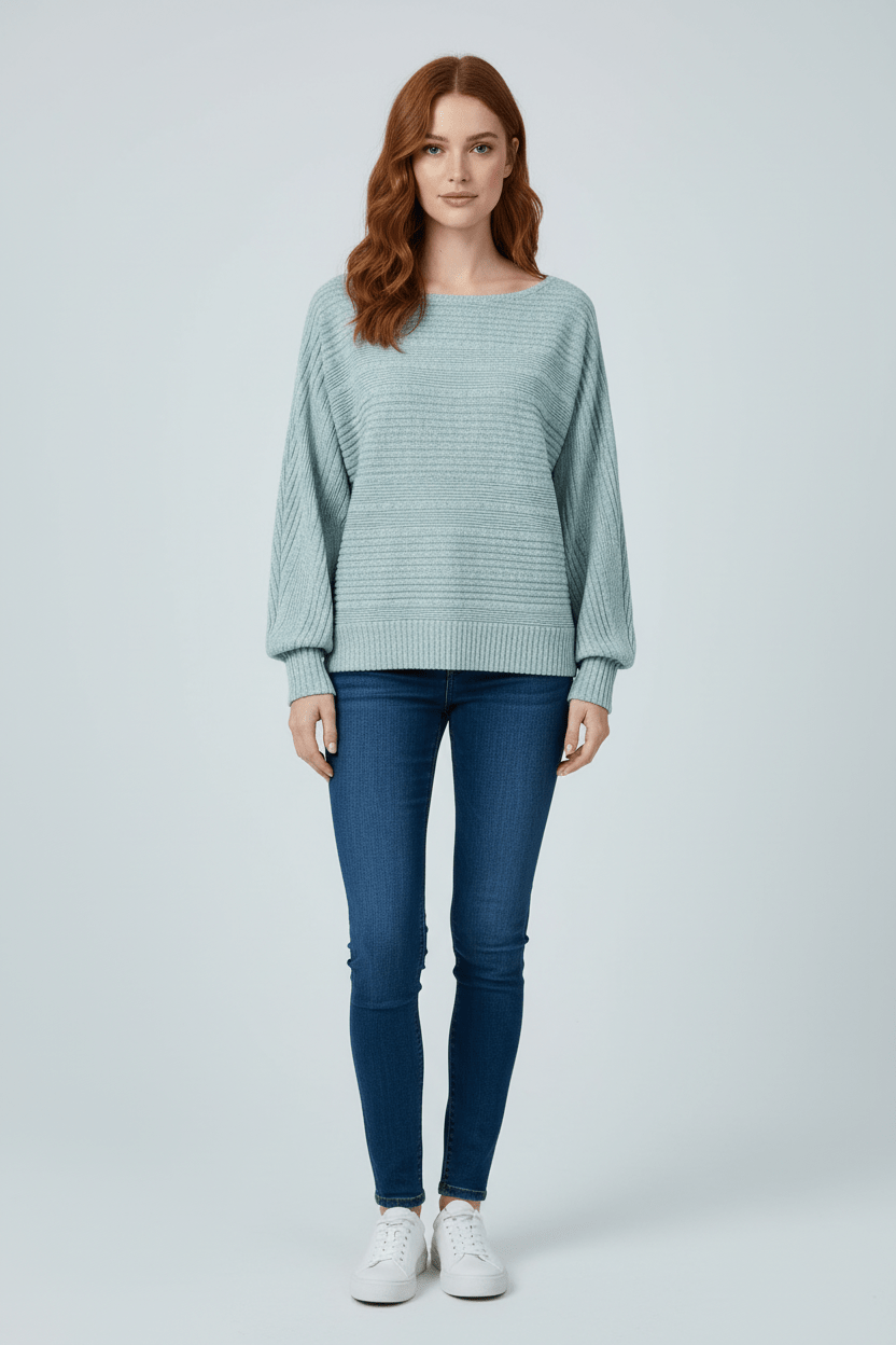 - Diseño de punto acanalado texturizado con mangas dolmán